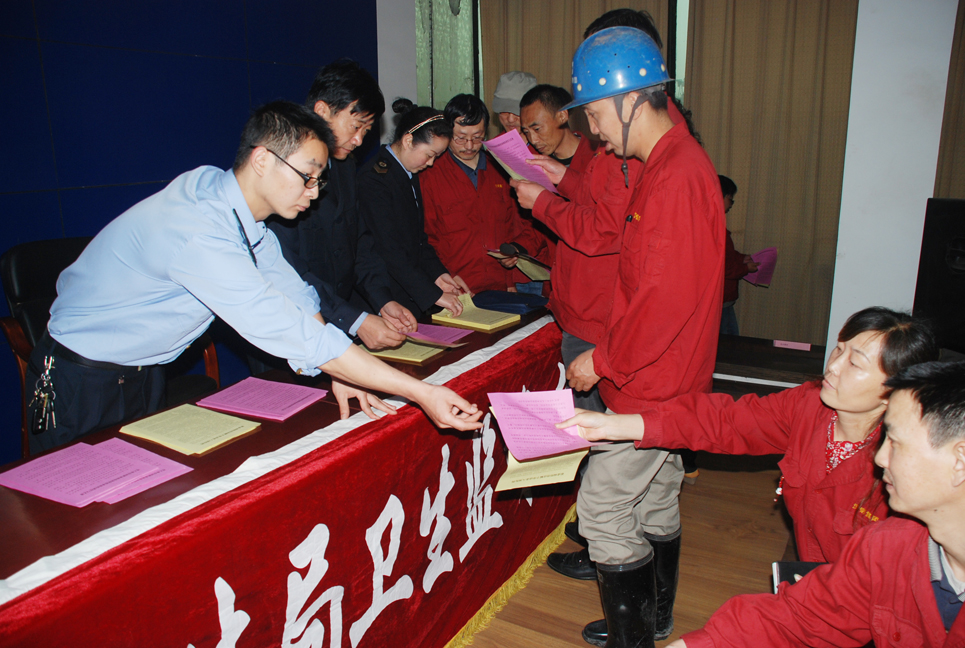 座談會結(jié)束后,縣衛(wèi)生局衛(wèi)生監(jiān)督所的工作人員還為職工發(fā)放了職業(yè)病防治相關(guān)宣傳頁。