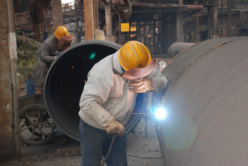 機修廠一車間為確保年修任務按時完成,加班加點制作年修用的備品備件,以保證年修工作順利進行。圖為一車間員工在現場焊接高爐煤氣總管。
