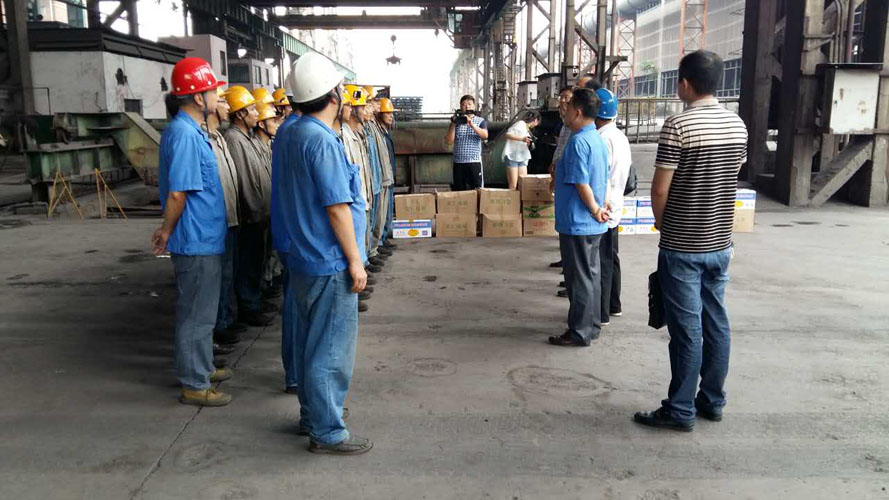 8月10日上午10:00時,趙文哲副縣長、李均主席、關小麗副主席來到公司煉鋼廠轉爐作業(yè)區(qū)慰問看望正在緊張生產(chǎn)的一線高溫崗位員工。趙文哲副縣長代表縣委、縣政府向公司全體高溫崗位員工表達了縣委縣政府的關懷、關心,對在高溫下堅持生產(chǎn),為勉縣經(jīng)濟做貢獻的廣大員工表示感謝。趙文哲副縣長指出,目前一段時間,整個鋼鐵行業(yè)形勢嚴峻,但隨著國家一系列政策的出臺,困難總會過去。趙文哲副縣長勉勵大家,要立足崗位,干好本職,堅定信心,團結一致,共度難關。