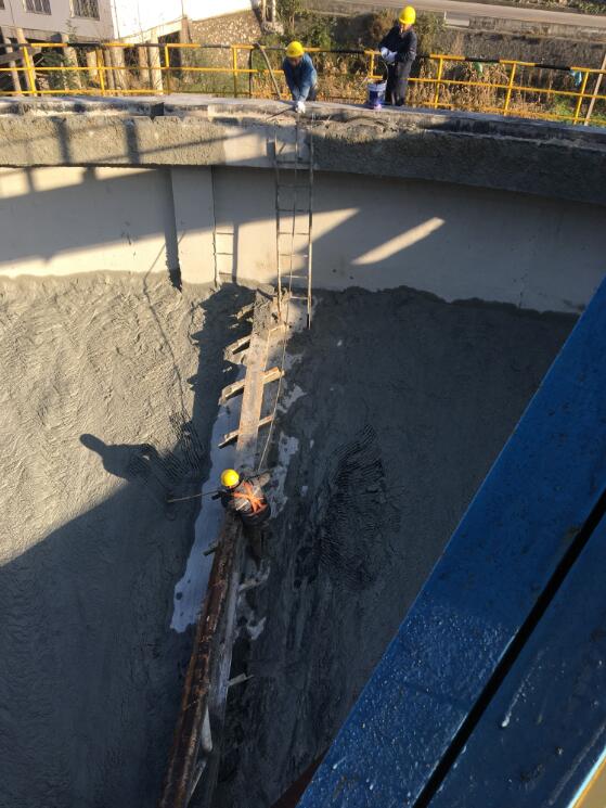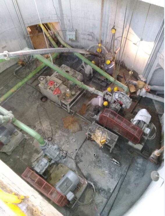 (副段長韓明正帶領當班崗位工下到濃縮池底部清理防水層及雜物)