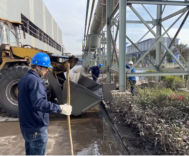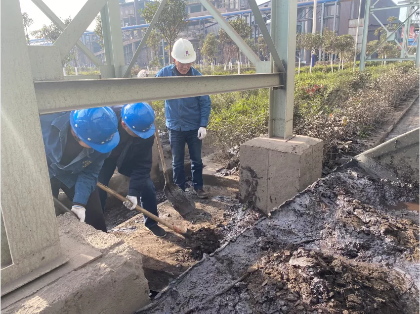 公司二號路是通往一線生產區域的主干道,也是職工上下班的必經之路。機關黨支部組織全體黨員對路面和溝渠進行清掃、清淤。大家分工明確,團結協作,用鐵鍬將路面淤泥清理干凈,再用水對路面進行沖洗。天氣雖然寒冷但是大家干勁十足,經過5個多小時的努力,對二號路全長350米水溝和路面進行了全面的清淤清洗,使主干道煥然一新。