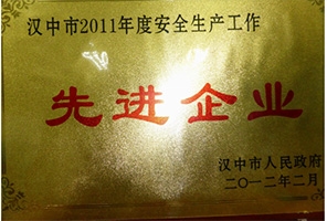 - 2012年2月授予漢中市2011年度安全生產(chǎn)工作先進企業(yè)